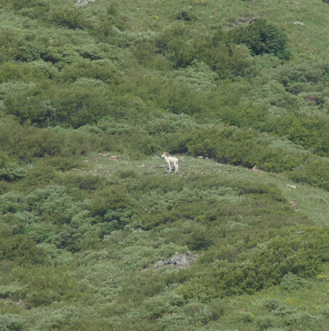 Had pictures earlier of the Dahl sheep close up, here is one way up on the mountain. These are not goats, but sheep.