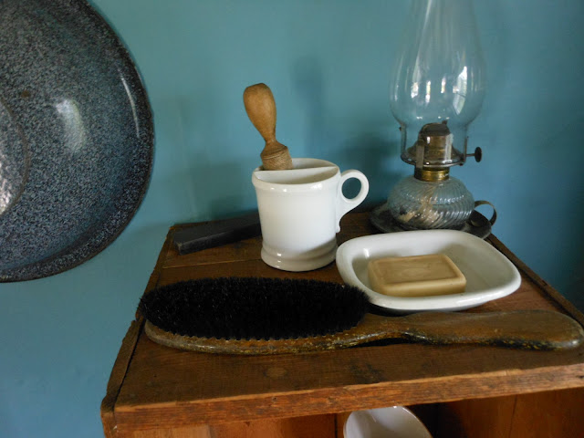 His wash basin and shaving gear.